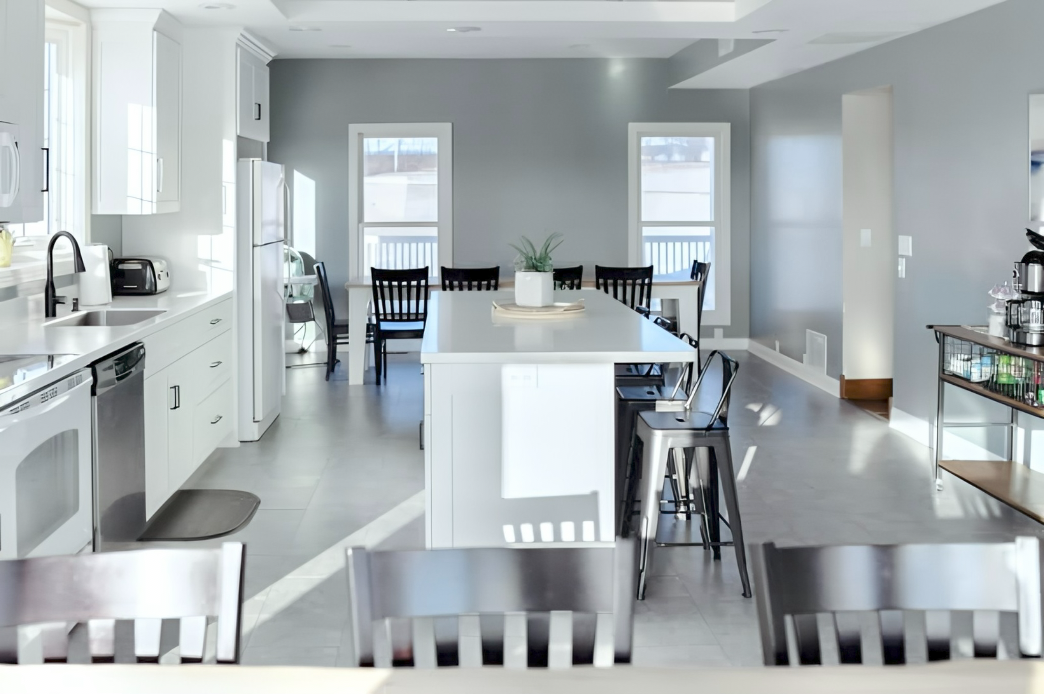 With 6.5 bedrooms and 7.5 bathrooms, this beautiful property offers plenty of room for your entire group to relax and reconnect. Enjoy the comforts of a fully equipped kitchen, beautiful porch views, and a large yard for the kids to play.